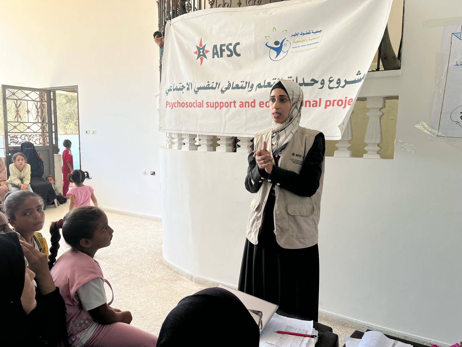 <p>خلال زيارة ممثل هيئة خدمات الأصدقاء الأمريكية لمركز قطوف الخير التع ...